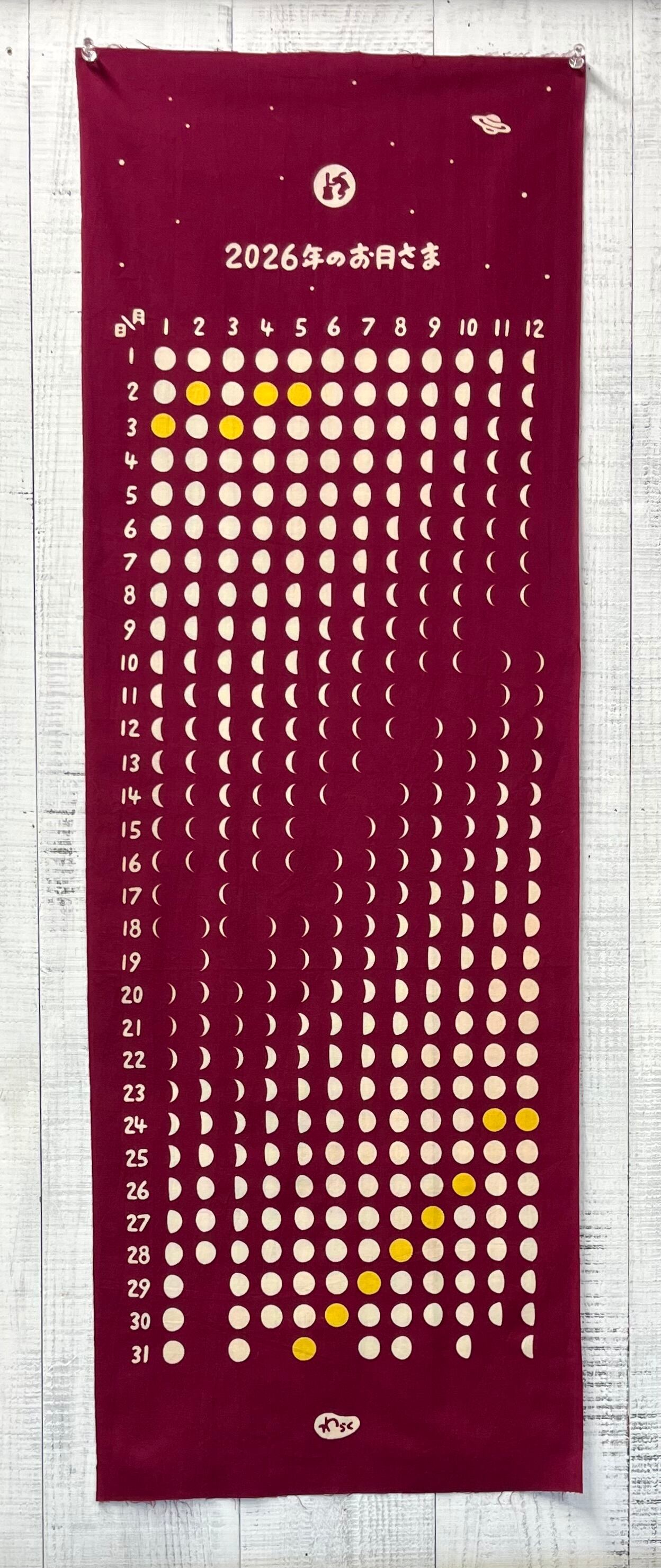 2026年の月の満ち欠けを手ぬぐいに染めました。